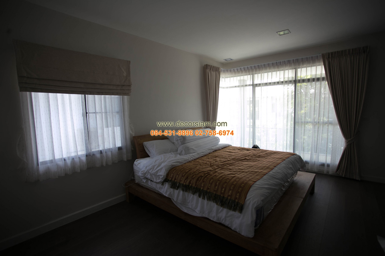 โดยทางเราได้ทำการติดตั้งผ้าม่านสองชั้นคือ ผ้าม่านพับแบบทึบกับชั้นผ้าโปร่งเพื่อให้เกิดความลงตัวในการใช้งานและความสวยงาม